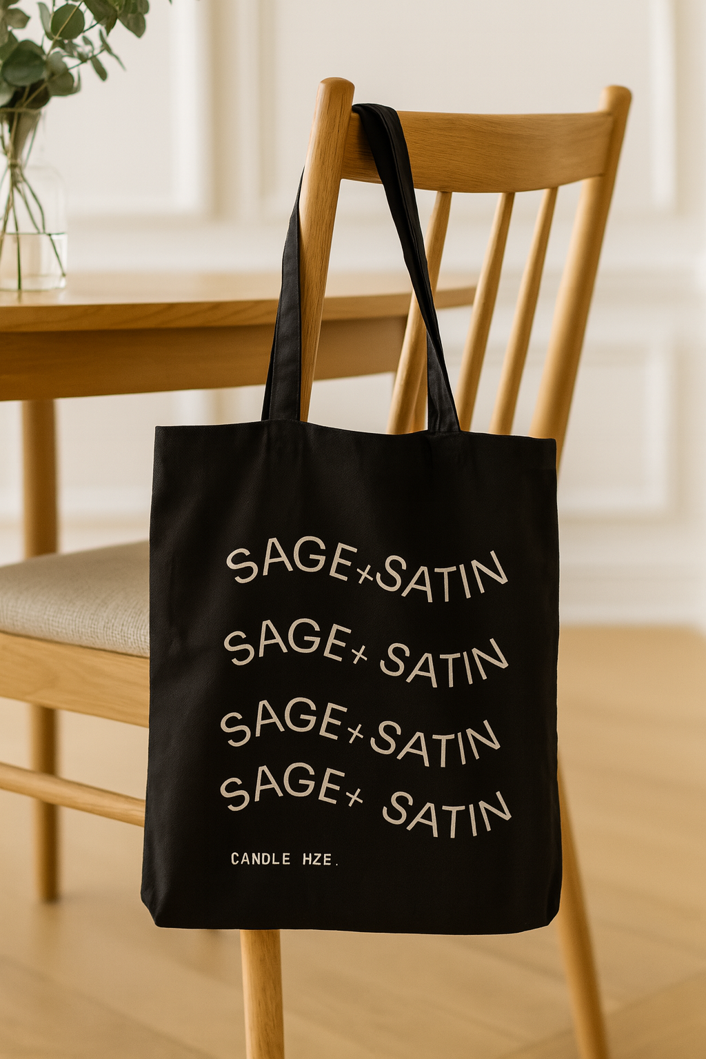 SAGE+SATIN CANVAS TOTE to carry all your candle house products or purchase as a gift bag. Made from 100% cotton canvas, this heavy fabric tote bag is durable and perfect for adults to use. It has carrying handles and is available in natural and black colors.